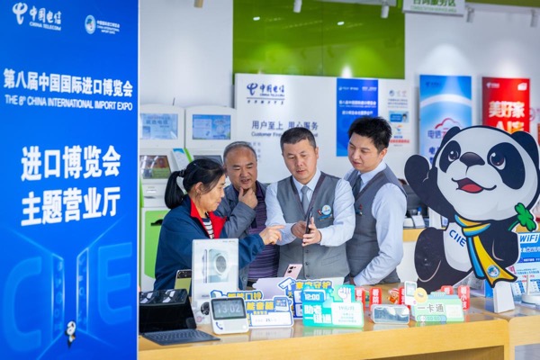在離“四葉草”不遠(yuǎn)的振涇路,“中國(guó)電信第八屆進(jìn)博會(huì)主題營(yíng)業(yè)廳”也已精心布置完畢,成為服務(wù)進(jìn)博的線(xiàn)下延伸陣地。