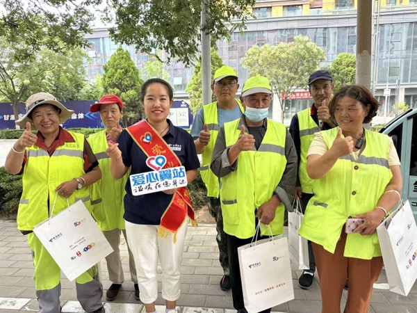 城市的整潔,離不開(kāi)環(huán)衛(wèi)工人日復(fù)一日的堅(jiān)守。烈日下、風(fēng)雨中,他們用汗水擦亮街道的每一個(gè)角落。“愛(ài)心大使”把“清涼包”遞到環(huán)衛(wèi)師傅手里——藿香正氣水、毛巾、礦泉水……電信藍(lán)與環(huán)衛(wèi)黃的交匯,是這座城市最暖的撞色。