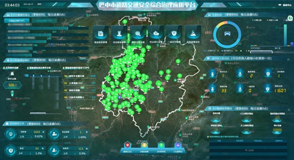 走進指揮中心,一面融合了GIS地圖的可視化大屏格外引人注目——隱患點位、車輛軌跡、事故數(shù)據(jù)、違法統(tǒng)計等信息一目了然。電子沙盤不僅能實時呈現(xiàn)交通態(tài)勢,還能通過數(shù)據(jù)建模生成趨勢分析報告,輔助管理者科學(xué)決策,推動交通管理從“經(jīng)驗判斷”轉(zhuǎn)向“數(shù)據(jù)驅(qū)動”。