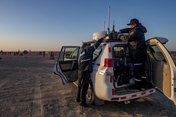 面對著陸場地形復雜的挑戰(zhàn),接到保障任務后,中國電信甘肅公司和新疆公司第一時間啟動三級聯(lián)動機制,組建聯(lián)合保障分隊,先后兩次深度參與酒泉衛(wèi)星發(fā)射中心組織的全流程演練,并三次深入無人區(qū)測試,全面評估設備性能。在此基礎上,團隊制定了“分類保障、動態(tài)覆蓋”方案,確保通信保障精準到每一臺設備、每一個時間節(jié)點。通過為核心搜救車隊調派3臺“動中通”應急通信保障車,實現(xiàn)車隊行進中手機信號持續(xù)覆蓋;為其余搜救車輛配備35臺天通車載衛(wèi)星通信終端,確保基礎通信不中斷;為返回艙落點區(qū)域配備1輛靜中通應急通信保障車,專項負責落點區(qū)域手機信號覆蓋;建立后臺實時監(jiān)控設備機制,確保整個通信網絡可控、可靠。