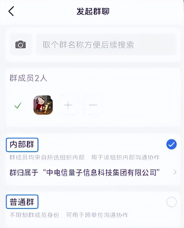 和普通社交軟件不同,量子密信的群聊在創(chuàng)建時(shí)即可選擇“內(nèi)部群”或“普通群”,“內(nèi)部群”僅支持邀請(qǐng)本組織內(nèi)成員,避免通訊錄同名同姓拉錯(cuò)群的尷尬,降低了外部人員被拉進(jìn)重要討論群的風(fēng)險(xiǎn),特別適合部門(mén)協(xié)作、項(xiàng)目組溝通。