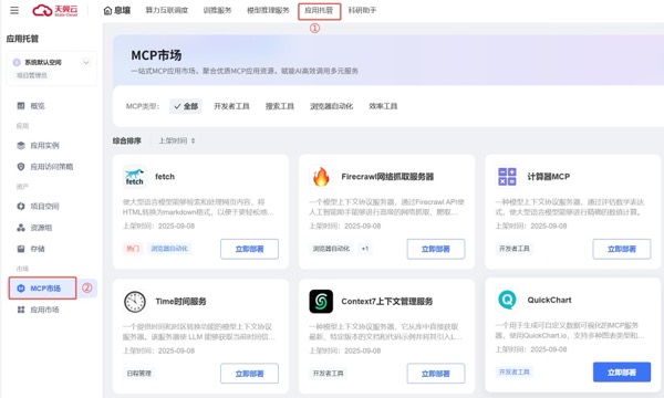 MCP市場一鍵部署;