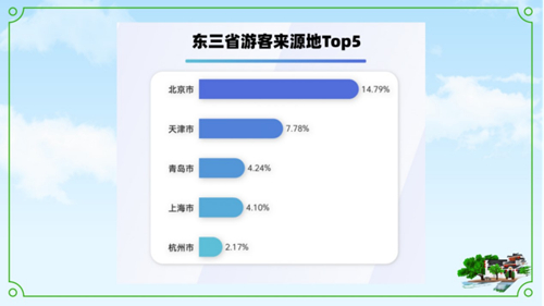 在所有到訪東北的游客中,北京市成為第一大客源地,占比達到14.79%,天津市、青島市緊隨其后。天氣再寒冷也抵擋不住東北鄉(xiāng)村“鐵鍋燉”“雞架”的誘惑,天南海北的游客聚集于此共享饕餮盛宴。
