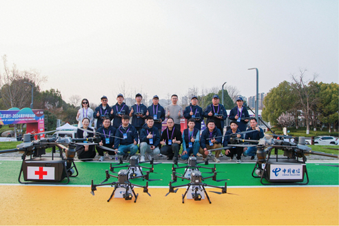 賽中,團(tuán)隊采用無人機“空地協(xié)同”保障方案,提供空中巡查、應(yīng)急救援、醫(yī)療運輸?shù)饶芰Γ哼\用無人運輸機進(jìn)行醫(yī)療藥品運轉(zhuǎn)流程,并進(jìn)行AED等醫(yī)療物資投放;在賽事后段設(shè)置無人機懸停點對賽事人員安全進(jìn)行保障,協(xié)助構(gòu)建起多維度、立體化、全時空的賽事安全保障服務(wù)體系。