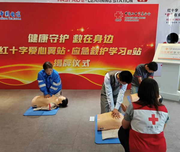 8月21日,全國首家“紅十字愛心翼站·應(yīng)急救護(hù)學(xué)習(xí)e站”在中國電信通州新華大街營業(yè)廳正式揭牌,此舉標(biāo)志著中國電信與中國紅十字基金會攜手共建的“紅十字愛心翼站·應(yīng)急救護(hù)學(xué)習(xí)e站”項目正式落地實施,旨在將專業(yè)的急救知識和技能普及到更廣泛的社區(qū)和民眾之中,提高公眾自救互救能力,為社區(qū)安全保駕護(hù)航。中華全國總工會權(quán)益保障部副部長金華勇出席活動,中國電信全渠道運營中心總經(jīng)理郭勇和中國紅十字基金會理事長貝曉超致辭。