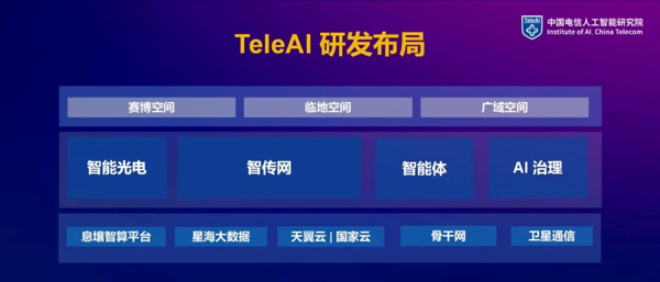 TeleAI 通過對智能光電、智能體、智傳網(wǎng)(AI Flow)、AI治理的研究,形成“三智”+“一治”的完整戰(zhàn)略布局,目標通過AI驅(qū)動包括賽博空間、臨地空間、廣域空間在內(nèi)的“三大空間經(jīng)濟”發(fā)展,不斷拓展人類的認知和活動范圍。