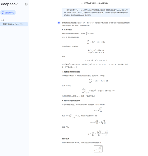 在“息壤”一體化智算平臺(tái)上部署的DeepSeek-R1模型,基于昇騰實(shí)例,實(shí)測(cè)一個(gè)涉及高等數(shù)學(xué)與物理學(xué)的復(fù)雜綜合問題,該問題不僅需要模型具備強(qiáng)大的數(shù)學(xué)推理能力,還要求其能夠理解并應(yīng)用物理學(xué)中的概念。