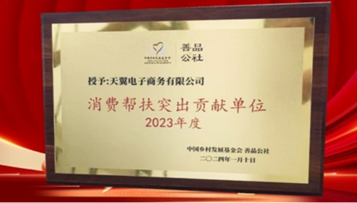 翼支付作為農(nóng)業(yè)農(nóng)村部首屆中國“土特產(chǎn)”集中推介大會(huì)唯一指定的全國“土特產(chǎn)”線上推介平臺(tái),承接了“全國土特產(chǎn)品牌館”平臺(tái)建設(shè),榮獲由中國鄉(xiāng)村發(fā)展基金會(huì)頒發(fā)的2023年消費(fèi)幫扶督促貢獻(xiàn)單位榮譽(yù)。
