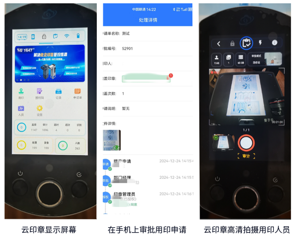 中國(guó)電信量子云印章平臺(tái)由云印章終端+云璽量子平臺(tái)組成,可通過智慧印章+量子安全傳輸+量子安全云存儲(chǔ)方式實(shí)現(xiàn)用印全流程管控,客戶可在手機(jī)、電腦上安裝APP或微信小程序?qū)崿F(xiàn)用印文件上傳及印章審批,在量子云印章終端輸入審批碼可實(shí)現(xiàn)文件識(shí)別與蓋章,同時(shí)通過量子卡實(shí)現(xiàn)蓋章圖片及數(shù)據(jù)的加密傳輸、存儲(chǔ)。云印章還具有定位及用章人員圖像高清拍攝及數(shù)據(jù)統(tǒng)計(jì)分析等功能,全方位、智能化滿足客戶印章使用安全、便捷、高效及可追溯的管理需求。
