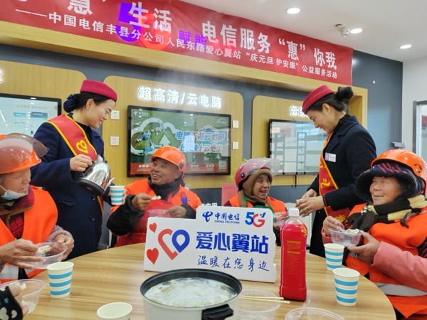 時(shí)值2025年元旦來(lái)臨之際,為營(yíng)造喜慶節(jié)日氛圍,向辛勤守護(hù)城市環(huán)境的環(huán)衛(wèi)工人表達(dá)敬意與感謝,12月29日,中國(guó)電信豐縣分公司“愛心翼站”組織開展“慶元旦 護(hù)安康”公益服務(wù)活動(dòng)。愛心大使為環(huán)衛(wèi)師傅們準(zhǔn)備了熱騰騰的午餐,邀請(qǐng)他們進(jìn)廳測(cè)量血壓并領(lǐng)取新年小禮品,為在戶外作業(yè)的“城市美容師”送去了冬日溫暖。