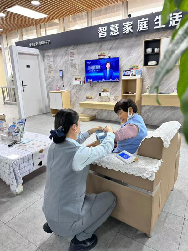 在中國(guó)電信新疆哈密分公司營(yíng)業(yè)廳愛心翼站內(nèi)還設(shè)有專門的血壓測(cè)量區(qū),愛心大使小張正在為一位老人測(cè)量血壓,她輕柔地?cái)[放好老人的手臂,細(xì)致地調(diào)整測(cè)量?jī)x器的位置,然后認(rèn)真記錄下測(cè)量結(jié)果。在得知老人的血壓情況后,小張還會(huì)給予一些健康建議,讓老人感到無(wú)比貼心。