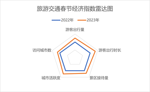綜合以上數(shù)據(jù),旅游交通春節(jié)經(jīng)濟指數(shù)同比去年農(nóng)歷同期提升23.9%。