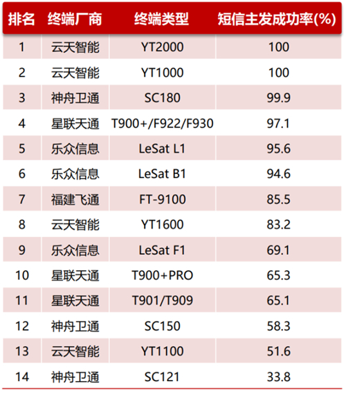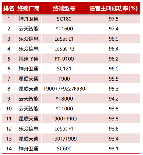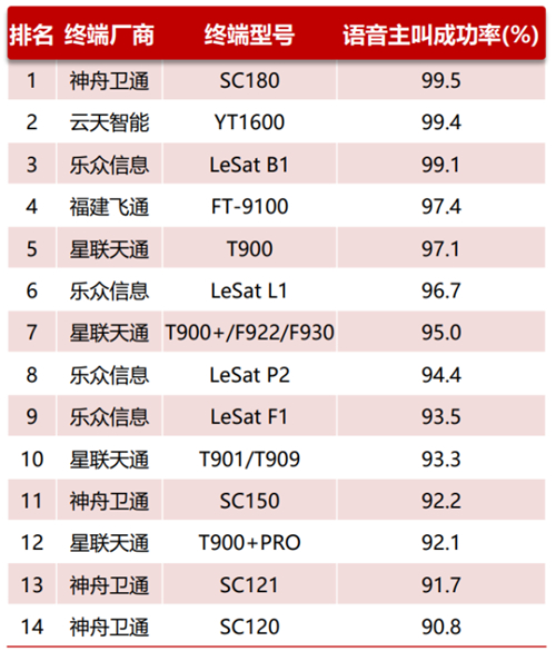2022年12月-2023年1月,根據(jù)天通信令監(jiān)測(cè)系統(tǒng)的主叫接入質(zhì)量分析模塊顯示數(shù)據(jù),語(yǔ)音主叫成功率排名如下: