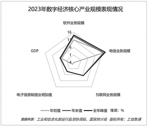日前,工業(yè)和信息化部網(wǎng)絡安全產(chǎn)業(yè)發(fā)展中心(工業(yè)和信息化部信息中心)工信數(shù)通團隊發(fā)布2023年數(shù)字經(jīng)濟核心產(chǎn)業(yè)發(fā)展主要指標全年表現(xiàn)回顧。數(shù)據(jù)顯示,2023年,我國經(jīng)濟逐步恢復、發(fā)展質量保持上升勢頭,其中新興產(chǎn)業(yè)發(fā)展動能持續(xù)壯大,數(shù)字經(jīng)濟展現(xiàn)出強大發(fā)展動力,特別是電子、軟件、通信、互聯(lián)網(wǎng)等數(shù)字經(jīng)濟核心產(chǎn)業(yè)在宏觀經(jīng)濟擴內需、促生產(chǎn)中發(fā)揮了重要作用。