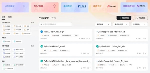 五大專區(qū),1000+優(yōu)質(zhì)大模型,涵蓋TeleChat等主流大模型,構(gòu)成了魔樂社區(qū)的豐富資源庫。開發(fā)者在這里不僅可以體驗(yàn)前沿的AI技術(shù),還可以輕松下載所需的模型,應(yīng)用到自己的項(xiàng)目中。