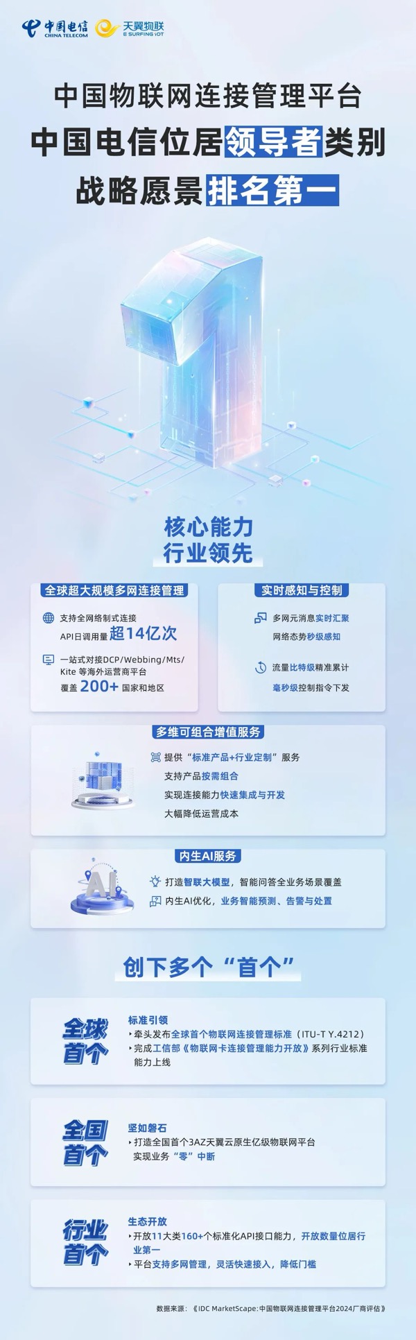 9月27日,國際數據公司IDC發(fā)布《IDC MarketScape:中國物聯網連接管理平臺廠商評估》報告,中國電信物聯網全連接管理平臺憑借領先的創(chuàng)新能力、戰(zhàn)略布局與行業(yè)實踐,在競爭力評估中位居“領導者”類別,其中戰(zhàn)略愿景維度排名業(yè)內第一。