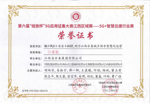 近日,第六屆“綻放杯”5G應(yīng)用征集大賽江西區(qū)域賽——5G+智慧住建行業(yè)賽結(jié)果揭曉。由江西省水務(wù)集團、江西電信、天翼物聯(lián)、熊貓智慧水務(wù)、江西普適科技聯(lián)合申報的《5G+PLC+安全+AIoT,助力江西水務(wù)城鄉(xiāng)供水智慧化運營》項目獲一等獎。