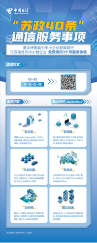 中國電信江蘇公司相關(guān)人士介紹,根據(jù)落實(shí)“蘇政40條”通信服務(wù)事項(xiàng)的有關(guān)規(guī)定,為助力中小企業(yè)輕裝前行,中國電信江蘇公司面向全省中小微企業(yè)免費(fèi)提供3個(gè)月服務(wù)體驗(yàn),包括免費(fèi)使用云主機(jī)、企業(yè)云盤、云電腦、云會(huì)議、云財(cái)稅、翼云加速服務(wù),該活動(dòng)將一直持續(xù)到今年底。企業(yè)通過登錄中國電信網(wǎng)上營業(yè)廳上的“蘇政40條”專區(qū),或是登錄省通信管理局網(wǎng)站并選擇中國電信江蘇公司“蘇政40條”服務(wù)事項(xiàng)辦理入口,以及用手機(jī)登錄“天翼生活”,選擇“政企服務(wù)”并登錄“蘇政40條”專區(qū)三種方式,都可以進(jìn)入中國電信江蘇公司惠企服務(wù)專區(qū),然后根據(jù)頁面提示,進(jìn)行網(wǎng)上企業(yè)認(rèn)證后,就可以在“翼云助企”活動(dòng)頁面中免費(fèi)領(lǐng)取并體驗(yàn)相關(guān)產(chǎn)品,“零成本”實(shí)現(xiàn)網(wǎng)上辦公。中國電信江蘇公司還組建了專門的服務(wù)團(tuán)隊(duì),遇到辦理問題可對(duì)應(yīng)相關(guān)產(chǎn)品咨詢專門的客服經(jīng)理,讓服務(wù)更加便捷貼心。