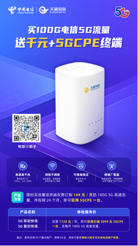 為助力中小企業(yè)創(chuàng)新業(yè)務(wù)發(fā)展方式,拓寬銷售通路,天翼物聯(lián)為中小企業(yè)提供5G CPE專項體驗福利。即日起,購買100G 5G高速流量月套餐并承諾在網(wǎng)24個月的,即可獲得5GCPE設(shè)備24個月體驗權(quán)限(無限續(xù)期)。本次體驗福利限量50臺,每位客戶僅限1臺,數(shù)量有限,先到先得,詳情可掃描下方二維碼“物聯(lián)小助手”。