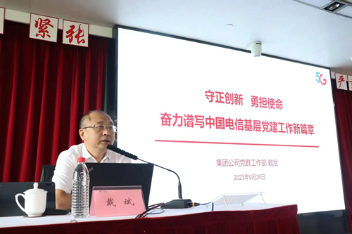 集團(tuán)公司黨群工作部主任戴斌在培訓(xùn)班上講授了題為《守正創(chuàng)新 勇?lián)姑?奮力譜寫中國(guó)電信基層黨建工作新篇章》專題黨課,帶領(lǐng)大家全面系統(tǒng)學(xué)習(xí)了習(xí)近平總書記關(guān)于黨的建設(shè)的重要思想;深入分析基層黨建工作存在的短板和不足,提出針對(duì)性的對(duì)策建議;圍繞構(gòu)建高質(zhì)量基層黨建工作格局,系統(tǒng)交流實(shí)施強(qiáng)基“七抓”工程、思政引領(lǐng)工程、新興領(lǐng)域黨建攻堅(jiān)工程、同心聚力工程、提能育才工程等5項(xiàng)工程,建立深度融合機(jī)制、分類指導(dǎo)機(jī)制、集約化機(jī)制等3項(xiàng)機(jī)制,打造“5+3”黨建工作體系的思考。