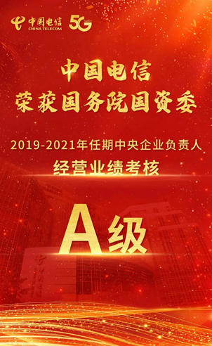 中國電信榮獲:2021年度中央企業(yè)負責人經(jīng)營業(yè)績考核A級企業(yè)、2019-2021年任期中央企業(yè)負責人經(jīng)營業(yè)績考核A級企業(yè)、2019-2021年任期業(yè)績優(yōu)秀企業(yè)及2019-2021年任期科技創(chuàng)新突出貢獻企業(yè)。中國電信已連續(xù)10年及3個任期獲得經(jīng)營業(yè)績考核A級企業(yè)稱號。