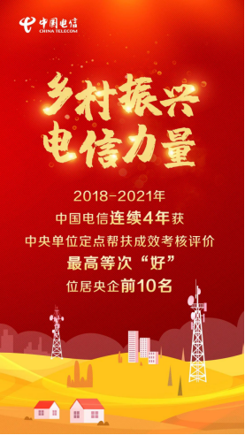 2021年,中國電信集團(tuán)有力應(yīng)對疫情影響,圓滿完成“十四五”規(guī)劃開局之年、鞏固拓展脫貧攻堅(jiān)成果同鄉(xiāng)村振興有效銜接起步之年各項(xiàng)幫扶任務(wù),連續(xù)4年全面超額完成定點(diǎn)幫扶考核指標(biāo)任務(wù)且均位居央企前列,獲得全國脫貧攻堅(jiān)總結(jié)表彰先進(jìn)集體及先進(jìn)個(gè)人等國家級榮譽(yù)4個(gè),幫扶工作得到黨和國家高度認(rèn)可。