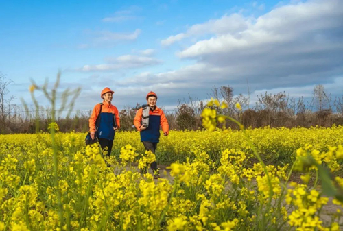 花開金黃,惹人醉,電信人檢測基站信號,為游客及管理人員提供網(wǎng)絡保障。