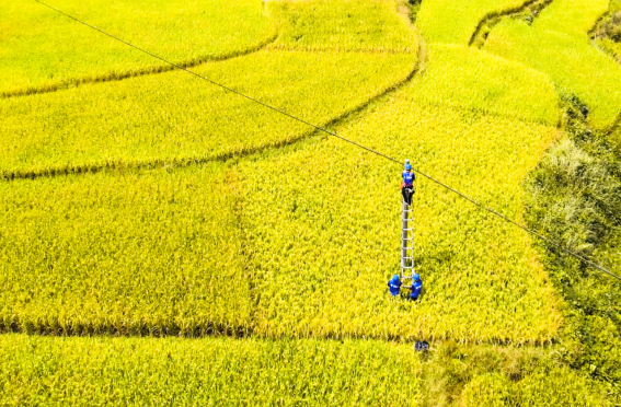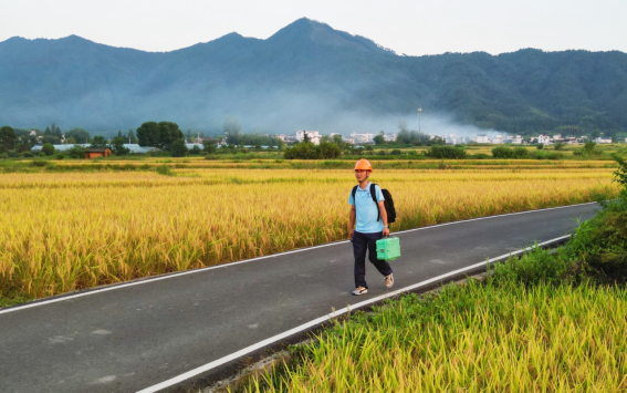 5、安徽黟縣關(guān)麓村金黃色的稻穗和蜿蜒的鄉(xiāng)間小路組成了一幅豐收的鄉(xiāng)村畫卷,中國電信裝維人員身背工具箱加“數(shù)”前行,忙碌奔走在“畫卷”中,為當(dāng)?shù)剜l(xiāng)村文旅及信息化產(chǎn)業(yè)提供優(yōu)質(zhì)網(wǎng)絡(luò)服務(wù),不斷提升網(wǎng)絡(luò)覆蓋度和信息化服務(wù)能力,全力助推鄉(xiāng)村振興。
