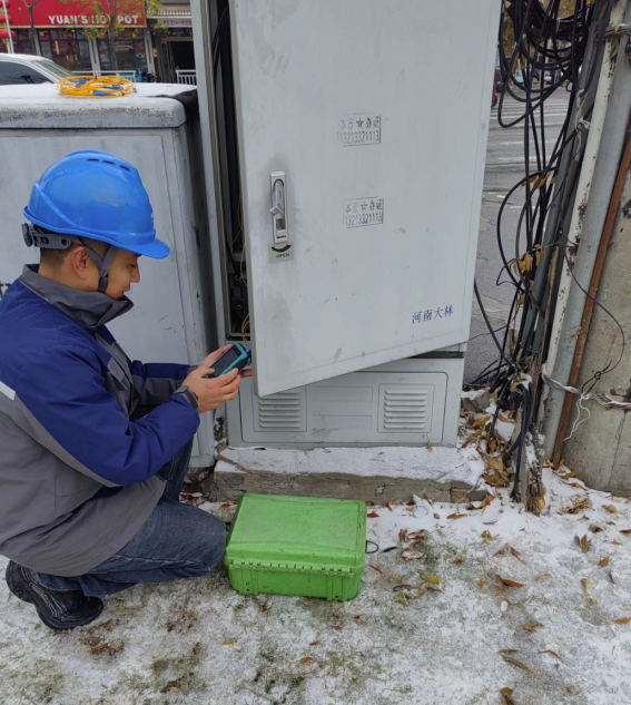 8、12月11日,河南周口迎來(lái)了入冬以來(lái)第一場(chǎng)降雪。收到告警信息后,電信智家工程師便早早來(lái)到故障現(xiàn)場(chǎng),開(kāi)始戶外作業(yè),排查處理故障,保障用戶網(wǎng)絡(luò)正常使用。