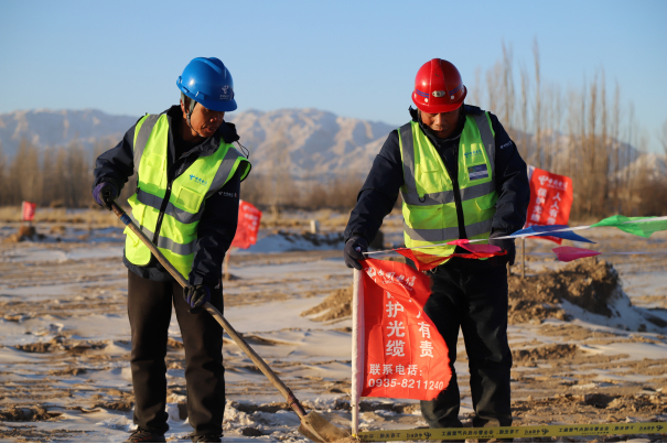 2、雪后的永昌最低氣溫已達到零下25℃,夾雜著雪粒的“白毛風”刮到臉上像刀割一樣疼。為了保障通信安全,金昌分公司干線維護員工們依然堅守在西蘭烏干線上,確保通信大動脈的安全暢通。圖為干線維護員工對責任區(qū)內(nèi)土地流轉(zhuǎn)平整現(xiàn)場交越區(qū)域進行重點防護和巡查。