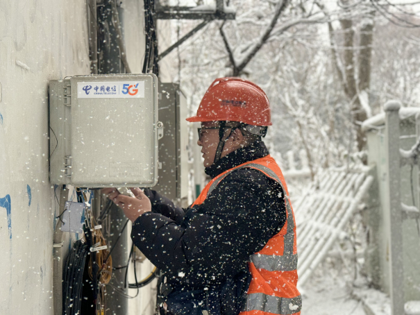 6、近日,一場罕見的暴雪、寒潮天氣侵襲山東德州,氣象部門連續(xù)發(fā)布紅色、橙色預警。為了確保網(wǎng)絡(luò)通信暢通安全,中國電信德州公司第一時間啟動應(yīng)急方案,迅速集結(jié)網(wǎng)絡(luò)條線員工開展抗暴雪保通信工作。室外溫度零下,維護人員頂著冰雪,冒著寒風,拉光纜、調(diào)設(shè)備、快速搶通故障;裝維小哥迅速對斷點快速修復,全力做好通信保障工作,為用戶網(wǎng)絡(luò)暢通撐起保護傘。寒風暴雪不止步,逆雪前行保通信,電信人以實際行動踐行責任與擔當。