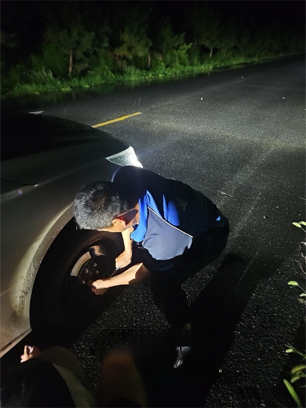 走近后,他們發(fā)現(xiàn)一名司機(jī)正焦急地站在雨中,原因是車(chē)輛前輪爆胎導(dǎo)致無(wú)法繼續(xù)行駛。面對(duì)這一緊急情況,裝維班組的成員們沒(méi)有絲毫猶豫,立即投入到救援工作中。他們利用自身的專(zhuān)業(yè)技能和豐富的經(jīng)驗(yàn),在暴雨中迅速而有效地完成了備胎的更換工作。