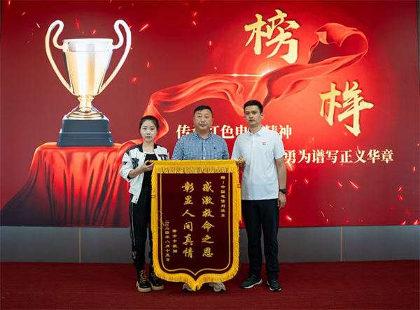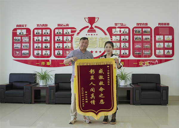 “感激救命之恩,彰顯人間真情”。8月28日,佳木斯市民、落水老人董女士的女兒來到中國電信黑龍江佳木斯分公司,將一面錦旗送到劉波東手中,對他英勇救人的善舉表示誠摯感謝。