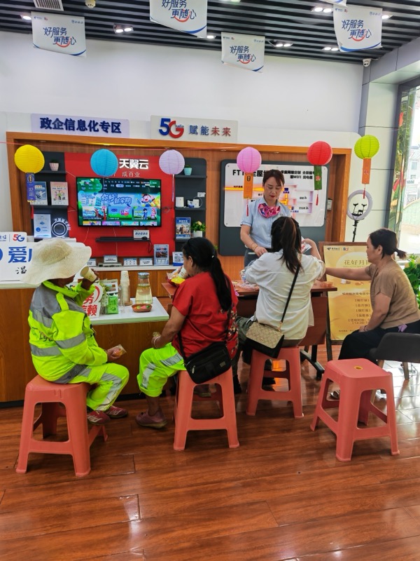 “愛心翼站”為戶外勞動者營造溫馨的節(jié)日港灣。每到節(jié)假日,中國電信湖南懷化分公司“愛心翼站”就積極組織各類關(guān)愛活動,為環(huán)衛(wèi)工人、外賣小哥等戶外工作者提供免費茶水、充電等公益服務(wù),讓戶外工作者體驗別具一格的節(jié)日味道,傳遞電信溫暖,將“滿意服務(wù),十分信賴”落實到大家的心坎上。