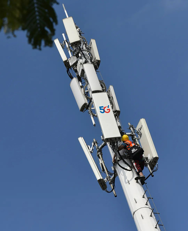 在肇慶七星巖園區(qū)內(nèi),電信技術(shù)人員正在對5G基站進(jìn)行維護(hù),完善園區(qū)內(nèi)5G信號覆蓋,豐富游客5G智能化網(wǎng)絡(luò)體驗。