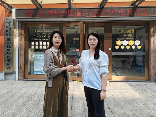 沈妍和湯女士在小區(qū)里面合影留念,紀(jì)念這次“雙向奔赴”,善良對善良的回饋。
