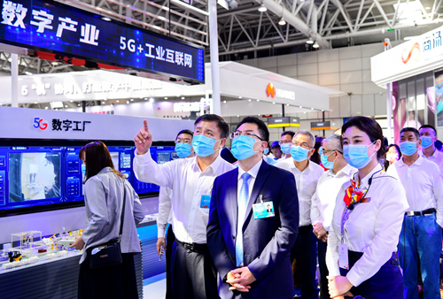 在參加第三屆數(shù)字中國建設(shè)峰會期間,王國權(quán)副總經(jīng)理參觀了數(shù)字中國建設(shè)成果展中國電信展臺。