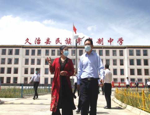 隨后,夏冰一行前往調(diào)研中國電信援建的久治縣民族中學(xué)閱覽樓項(xiàng)目。2020年以來,中國電信連續(xù)兩年累計(jì)捐贈教育幫扶資金達(dá)620萬元,援建久治縣寄宿制“民族中學(xué)”閱覽樓項(xiàng)目和久治縣部分小學(xué)錄播教室建設(shè)項(xiàng)目,持續(xù)改善久治縣辦學(xué)條件、提升教師素質(zhì)、提高教學(xué)質(zhì)量、積極幫助久治縣推進(jìn)義務(wù)教育均衡發(fā)展,從根本上解決適齡兒童少年“有學(xué)上”的問題,逐步解決“上好學(xué)”的問題。2021年,久治縣適齡兒童入學(xué)率達(dá)100%、九年義務(wù)教育鞏固率超96%,有效縮小了“城鄉(xiāng)間、校際間”辦學(xué)條件差距,有力促進(jìn)全縣教育事業(yè)持續(xù)健康發(fā)展。在調(diào)研過程中,夏冰對久治縣民族寄宿制中學(xué)的硬件基礎(chǔ)設(shè)施建設(shè)、扶志扶智等工作給予了高度評價(jià),并希望學(xué)校加大校園信息化建設(shè)力度,進(jìn)一步縮短民族地區(qū)與發(fā)達(dá)地區(qū)的差距,促進(jìn)學(xué)生德智體美勞全面發(fā)展,使久治縣教育信息化工作再上新臺階。