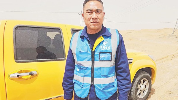 每當(dāng)邊防連隊的戰(zhàn)士看到一輛寫有“中國電信”的黃色皮卡車在茫茫戈壁中飛馳,就知道石永彥來了,通信馬上就能恢復(fù)了,他們親切地稱石永彥為“老石”。這一聲“老石”,架起了戰(zhàn)士與家人之間聯(lián)絡(luò)的暖心橋梁,更是阿拉善人民守邊戍邊、強(qiáng)邊固邊的動人縮影。
