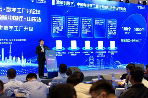 中國電信山東公司副總經(jīng)理米一華在致辭中介紹了數(shù)字化、智能化、網(wǎng)絡(luò)化的大環(huán)境下,中國電信山東公司積極構(gòu)建核心競爭力,在數(shù)字工廠建設(shè)道路上的探索和實(shí)踐中的具體舉措和成果。中國電信山東公司堅(jiān)定貫徹集團(tuán)“云改數(shù)轉(zhuǎn)”戰(zhàn)略,以“網(wǎng)是基礎(chǔ),云為核心,網(wǎng)隨云動(dòng),云網(wǎng)一體”的總體思路,加快推進(jìn)以5G為代表的新基建,結(jié)合本地實(shí)際規(guī)劃了山東“2+16+X”的云布局,推進(jìn)多層次的云網(wǎng)融合布局演進(jìn),不斷夯實(shí)數(shù)字工廠自主可控的數(shù)字底座。中國電信山東公司以“融云、融AI、融安全、融平臺(tái)”為驅(qū)動(dòng),加大優(yōu)質(zhì)高效的數(shù)字化產(chǎn)品和服務(wù)供給,為數(shù)字工廠提供更精準(zhǔn)、更高效的解決方案,為各行各業(yè)“上云用數(shù)賦智”,全省累計(jì)打造5G定制網(wǎng)項(xiàng)目超200個(gè),5G行業(yè)商用項(xiàng)目近千個(gè),形成了智慧制造、智慧化工、智慧電力等一系列典型案例。