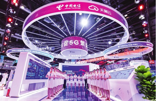 國(guó)云,開(kāi)啟數(shù)字中國(guó)宏偉征程。數(shù)智,描繪信息生活美好未來(lái)。6月4日,一場(chǎng)信息通信行業(yè)盛會(huì)——第31屆中國(guó)國(guó)際信息通信展覽會(huì)在北京拉開(kāi)帷幕。展會(huì)上,中國(guó)電信以“國(guó)云啟新程 數(shù)智連未來(lái)”為主題精彩亮相。由中國(guó)電信江蘇公司搭建的炫目展臺(tái),通過(guò)“智繪新時(shí)代”“構(gòu)筑新底座”“點(diǎn)燃新科技”“產(chǎn)業(yè)新引擎”“共享新生活”五大分區(qū)串聯(lián)數(shù)十個(gè)展項(xiàng),運(yùn)用實(shí)物場(chǎng)景、遠(yuǎn)程連線、虛擬現(xiàn)實(shí)、智能互動(dòng)演示、5G直播等形式,充分展示了中國(guó)電信作為建設(shè)網(wǎng)絡(luò)強(qiáng)國(guó)和數(shù)字中國(guó)、維護(hù)網(wǎng)信安全的國(guó)家隊(duì)和主力軍,全面深入實(shí)施“云改數(shù)轉(zhuǎn)”戰(zhàn)略,全力打造服務(wù)型、科技型、安全型企業(yè),為賦能經(jīng)濟(jì)社會(huì)數(shù)字化轉(zhuǎn)型作出積極貢獻(xiàn)。
