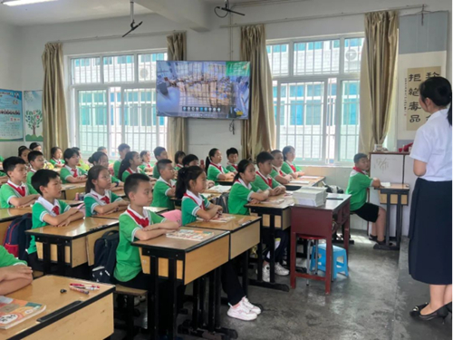 貴州省黔西南州興義市紅星路小學(xué)四年級(jí)的一堂環(huán)保主題班會(huì)課上,教師柳艷打開顯示大屏,向?qū)W生們介紹生態(tài)環(huán)保,“ECO是指轉(zhuǎn)變觀念和思路,加強(qiáng)引導(dǎo),樹立綠色低碳發(fā)展觀……”