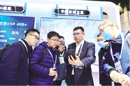 在“5G新通信”展區(qū),觀展者駐足體驗(yàn)中國電信自研手機(jī)的衛(wèi)星通信功能。2023年9月,中國電信推出手機(jī)直連衛(wèi)星業(yè)務(wù),成為全球首家實(shí)現(xiàn)地面蜂窩網(wǎng)與衛(wèi)星網(wǎng)融合的電信運(yùn)營商,用戶在偏遠(yuǎn)戶外、森林、沙漠、高山、海洋等移動網(wǎng)絡(luò)覆蓋不到的地方,或遭遇洪水、地震等自然災(zāi)害,手機(jī)直連衛(wèi)星業(yè)務(wù)將成為應(yīng)急通信最主要的手段。