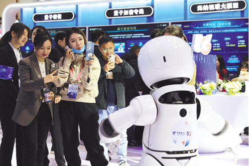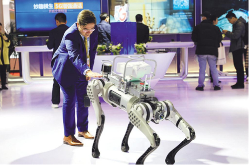 走進(jìn)中國電信展臺,首先映入眼簾的是機(jī)器狗“B1”,惟妙惟肖的姿態(tài)、靈活矯健的步伐,吸引了一大批觀眾前來互動。