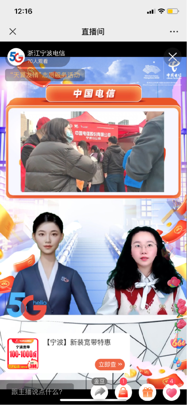 活動現(xiàn)場,還有一位特殊的嘉賓獲得市民青睞,她就是中國電信集團(tuán)研發(fā)的AI數(shù)字人,本次跨越1200公里做客中國電信寧波分公司直播間、與甬城市民零距離互動。作為亞運(yùn)百科知識的出題官,AI數(shù)字人邀請現(xiàn)場市民參與知識競答,根據(jù)答題積分領(lǐng)取相應(yīng)的精美禮品。