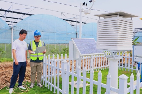 技術(shù)人員測(cè)試智慧大棚網(wǎng)絡(luò)覆蓋情況