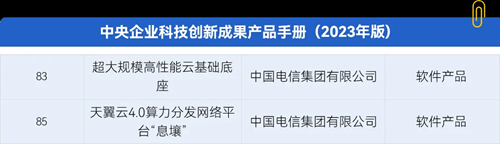 近日,國務院國資委發(fā)布《中央企業(yè)科技創(chuàng)新成果產品手冊(2023年版)》,中國電信天翼云超大規(guī)模高性能云基礎底座、算力分發(fā)網絡平臺“息壤”成功入選軟件產品領域科技創(chuàng)新成果,獲國資委權威認可。
