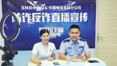 近日,為深入貫徹落實(shí)習(xí)近平總書記關(guān)于打擊治理電信網(wǎng)絡(luò)詐騙犯罪工作的重要指示精神,中國電信廣西玉林分公司按照“斷卡”行動(dòng)工作要求,加強(qiáng)與公安機(jī)關(guān)聯(lián)動(dòng),聯(lián)合玉林市反詐中心開展防詐反詐直播宣傳活動(dòng),取得了較好反響。圖為玉林市反詐中心民警張逸康做客玉林電信直播間,用通俗易懂、幽默風(fēng)趣的語言介紹了電信網(wǎng)絡(luò)詐騙常見類型、詐騙方式、實(shí)施套路及受騙后的補(bǔ)救措施。
