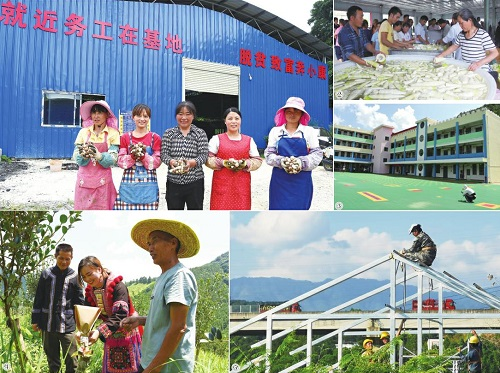 ① 終于實(shí)現(xiàn)了在家門口務(wù)工的羅春燕(中)和她的姐妹。