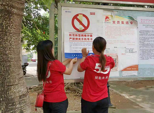 加強內(nèi)外宣傳,提高防范意識。該分公司組織全體員工參加“防詐反詐”知識培訓和考試,以案說教,以案促改,以案警示,提高全員反詐意識,筑牢思想防線。以協(xié)助公安機關(guān)向市民發(fā)送防詐公益短信,為市民開展防詐知識講座、直播,通過本地主流媒體、分公司微信公眾號、營業(yè)廳LED屏、受理臺席、電信IPTV開機界面等平臺發(fā)布防詐宣傳為抓手,豐富宣傳形式,提高市民防范意識。通過辦理面柜業(yè)務(wù),向群眾宣傳防詐知識,推薦加裝國家反詐中心“APP”、金鐘罩、天翼防騷擾等反詐平臺,提防上當受騙,對新開戶客戶,要求簽訂業(yè)務(wù)告知書,明確告知買賣手機卡屬于犯罪行為。
